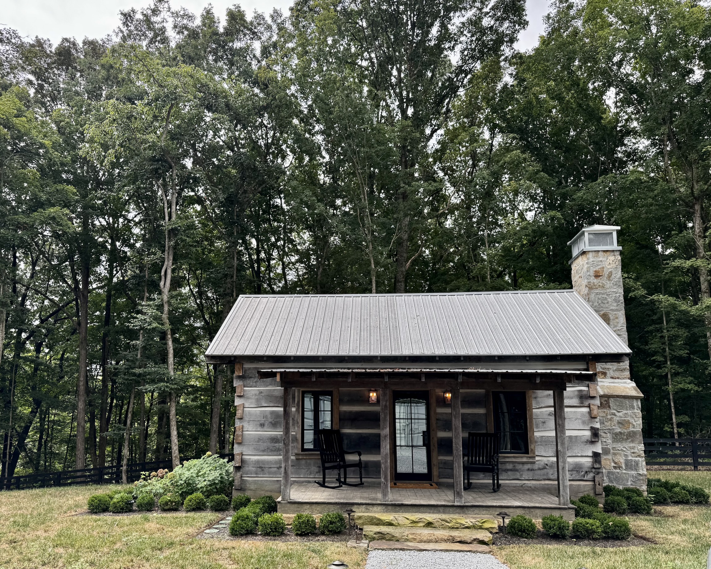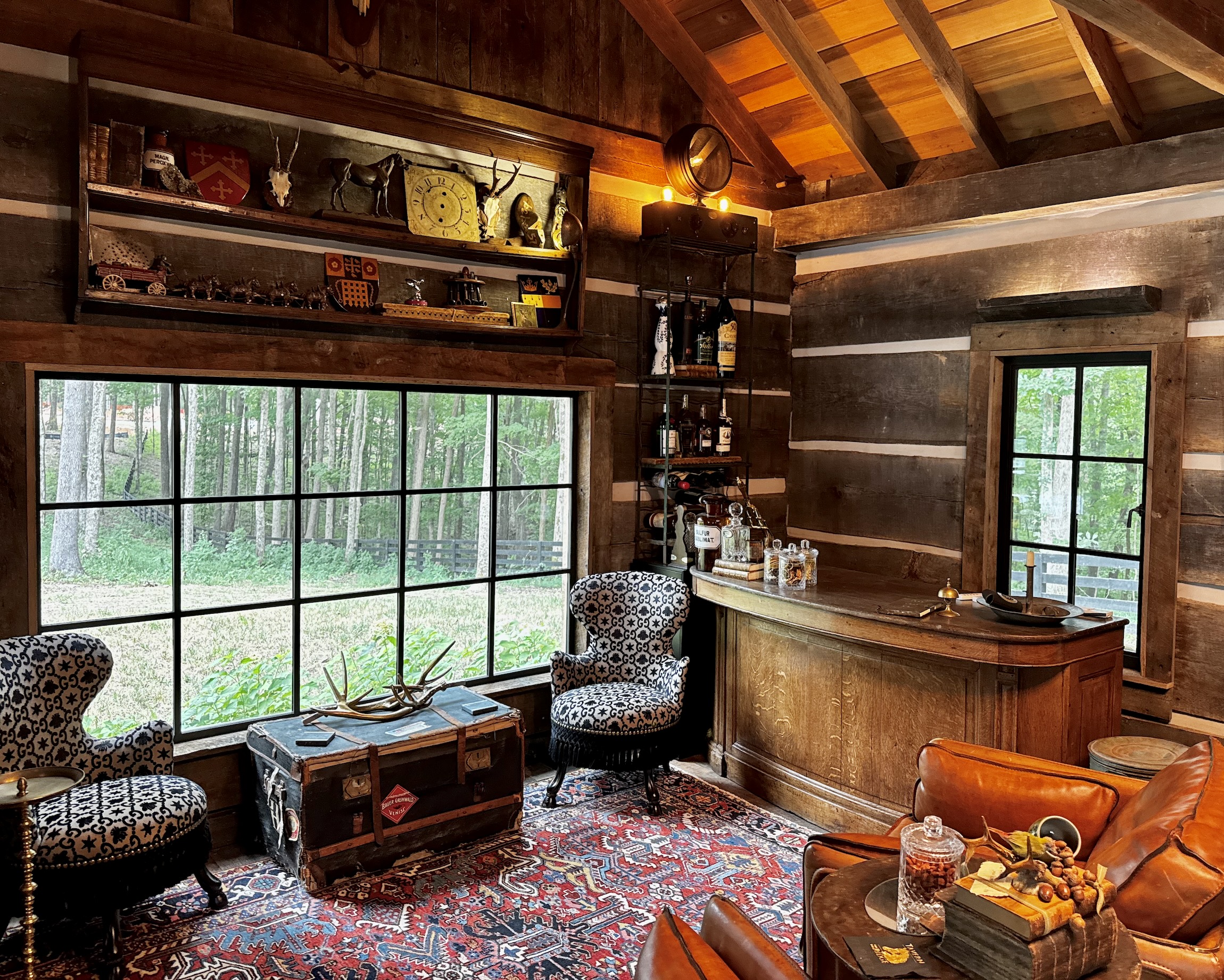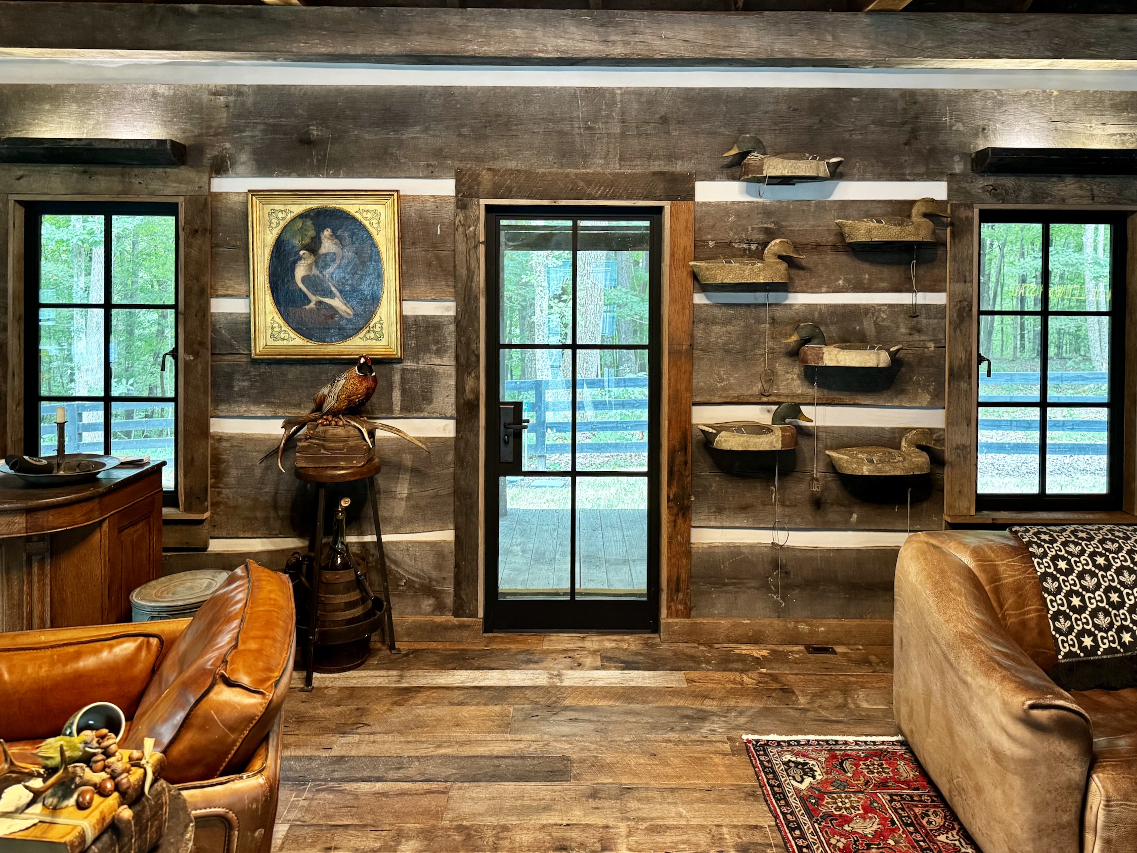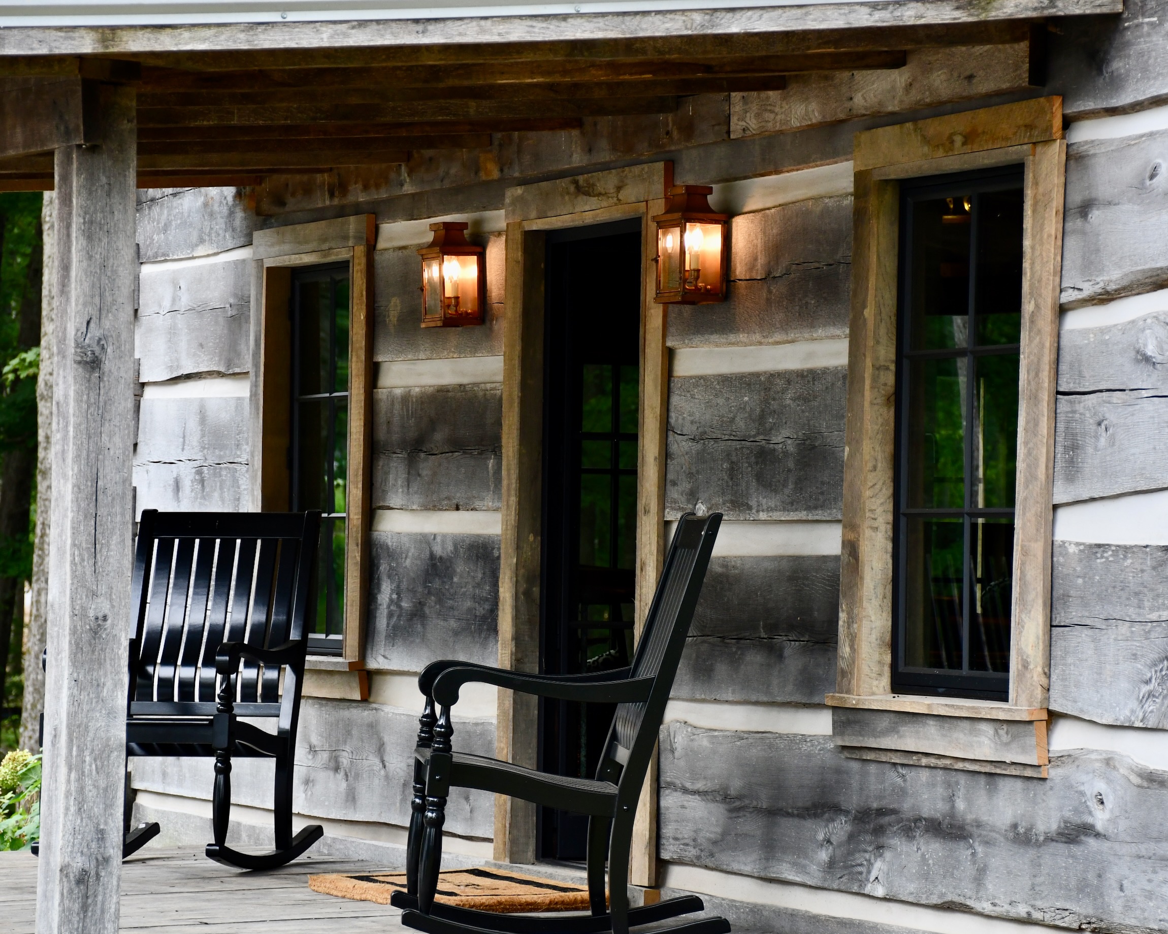 Cabin in the Woods A 19th century cabin that was taken down and rebuilt on a private ranch. The homeowner wanted to maximize light with steel doors and windows while retaining the original feel of the building.